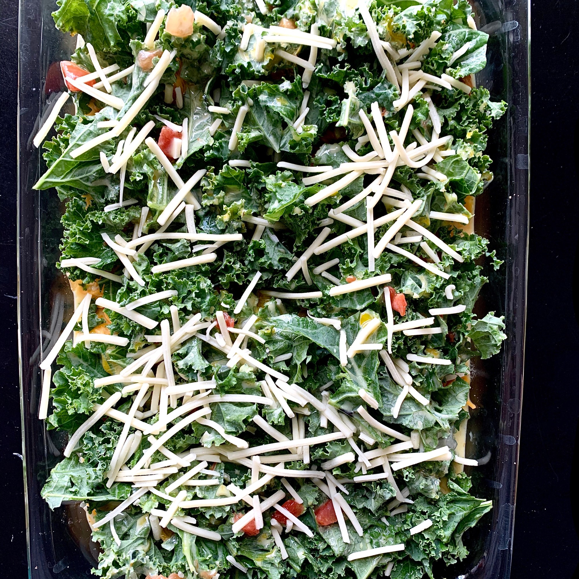 - Sprinkle remaining 1/2 cup cheese over the kale.